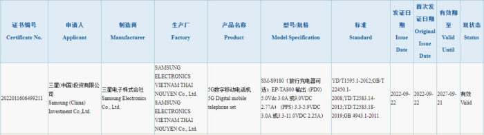 This morning, the Galaxy S23 Ultra was listed in the 3C certification. The model number is SM-S9180, which indicates it will be the Chinese version of the Galaxy S23 Ultra. As mentioned in the certification, the Galaxy S23 Ultra will support 25W charging.