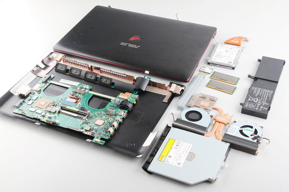 In this guide, I will explain how to disassemble the Asus G550JK to remove the battery, hard drive, DVD drive, wireless, RAM, heat sink, speakers, keyboard, cooling fan, and motherboard.
