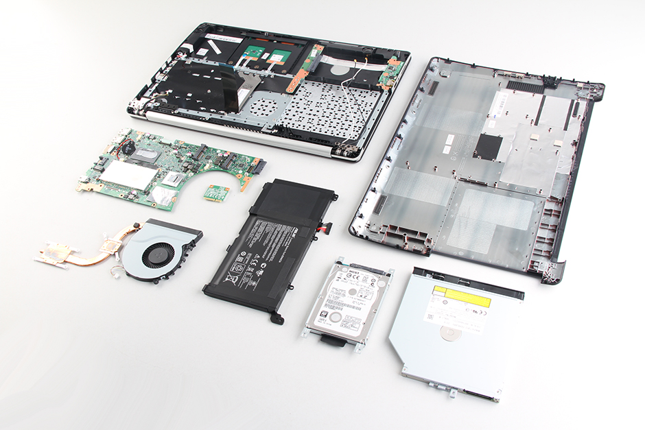 In this guide, I will explain how to disassemble the Asus R553LN to remove the battery, DVD drive, hard drive, keyboard, touchpad, wireless card, heat sink, cooling fan, speakers, and motherboard.