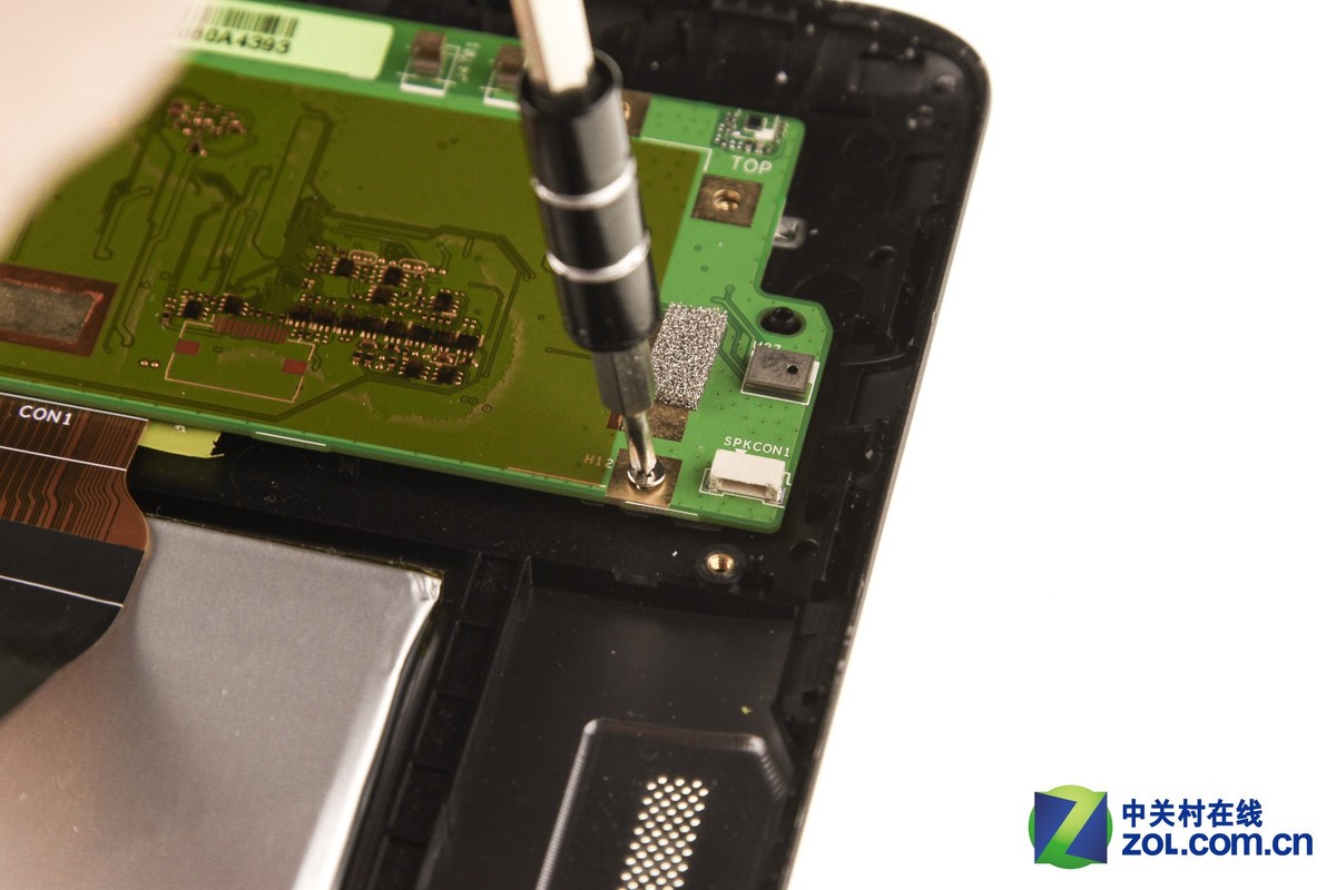 Once the screen is removed, you can access the battery, motherboard, speaker, and other internal components.