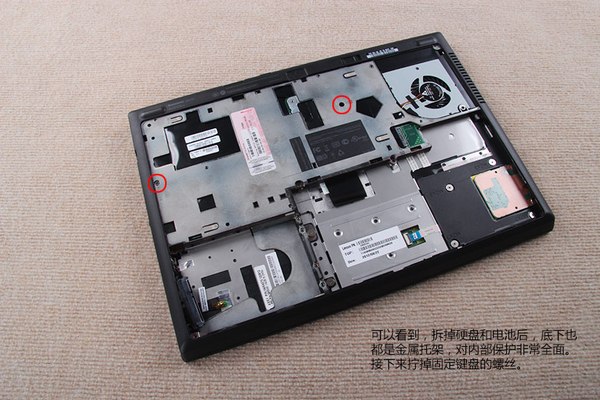 After removing the back cover, you can access the battery, hard drive, and cooling fan.