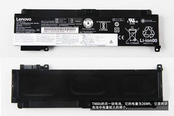 Battery specifications: 11.4V, 2130mAh, 26Wh Li-ion battery, Lenovo P/N: SB10J79002, 01AV405.
