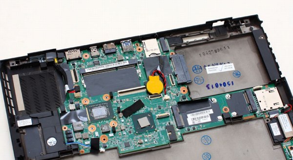 Close-up of the Lenovo Thinkpad X1 Carbon motherboard.