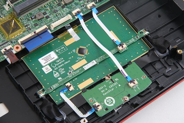 Disconnect the keyboard cable and touchpad cable from the motherboard.
