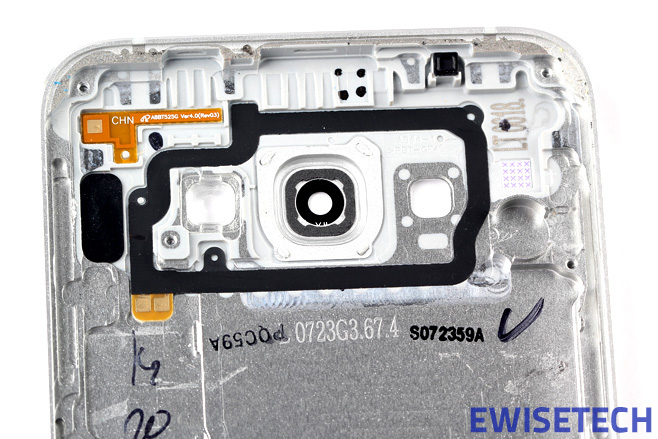 After removing the screen, you can see the middle frame. Remove the screws securing the middle frame. Insert a pry tool under the middle frame and slide it to separate the frame from the phone.