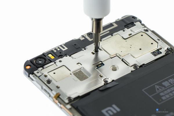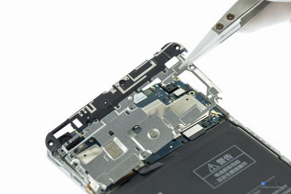 When we opened the back cover completely, we found the fingerprint recognition module still connected to the back cover.