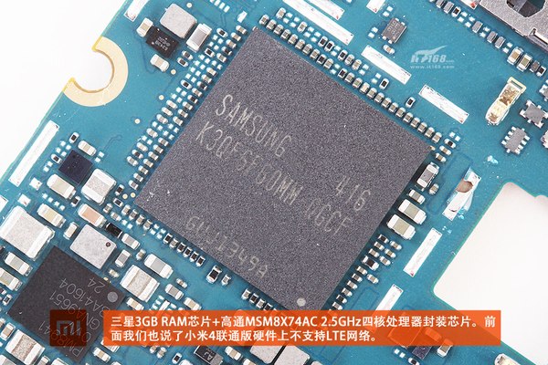 Qualcomm WCN3680 Wi-Fi, Bluetooth, FM radio chip, supports 802.11ac 5GHz Wi-Fi and Bluetooth 4.0.