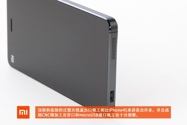 The micro USB port features a 6-pin design, and the Xiaomi Mi 4 supports 9V/1.2A fast charging.