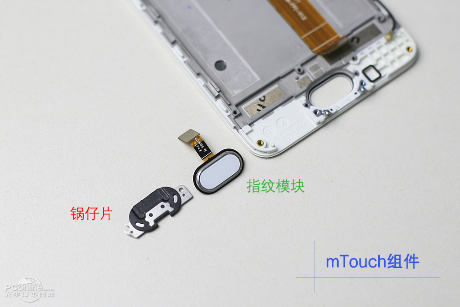 The motherboard layout of the Meizu M5s is slightly different from that of the Meizu 5. The phone body is connected to the motherboard via a flexible cable, which is glued to the motherboard. When disassembling, the cable must be carefully peeled off the motherboard.
