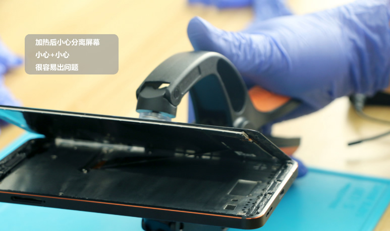 Then, separate the screen from the phone body. The screen is directly stuck to the metal plate.
