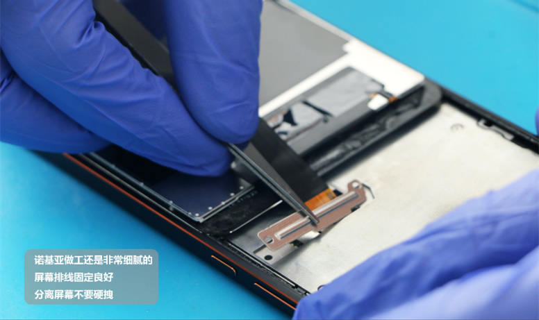 Use a suction cup to separate the screen from the phone body, and then disconnect the screen flex cable from the motherboard. Although the screen has been removed, the internal structure of the phone still cannot be directly observed due to the presence of the metal plate.
